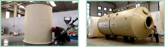 采用PPH螺旋擠出纏繞技術(shù)加工制作而成的全塑結(jié)構(gòu)的耐腐蝕塔器或常壓儲(chǔ)罐;取代了板材二次成型的舊工藝。